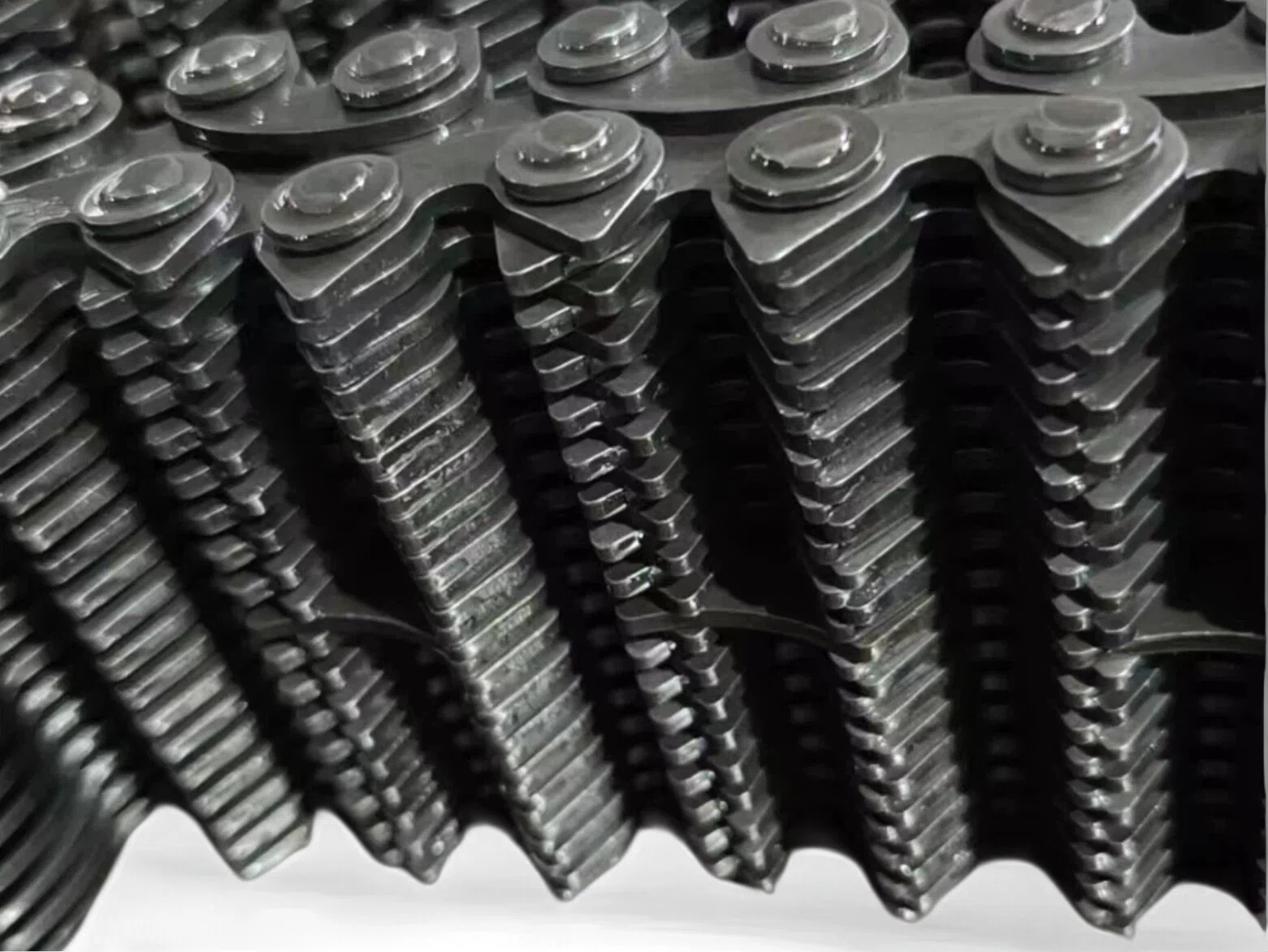 The toothed chain, also known as silent chain, is an industrial drive chain designed for quieter operation and smoother power transmission. Unlike conventional roller chains, which tend to vibrate and generate high noise levels, the toothed chain engages through tooth contact, resulting in smoother, more stable running.
